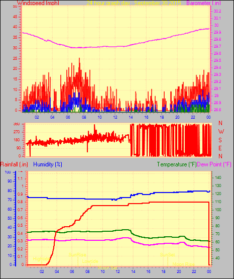 Maximum rain per minute = 0.02 in. on day 29 at time 22:16