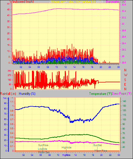 Maximum windspeed = 6.9 mph on day 30 at time 16:16
