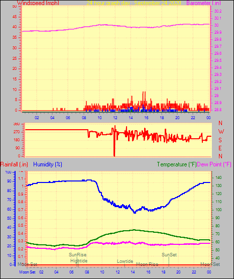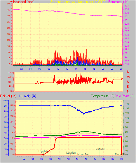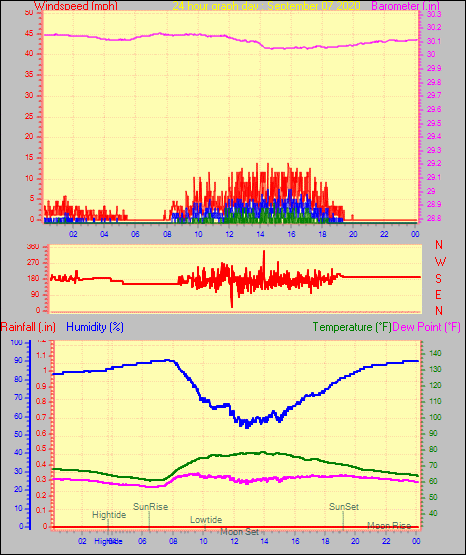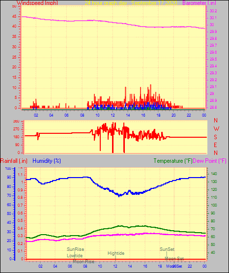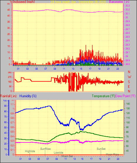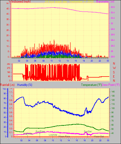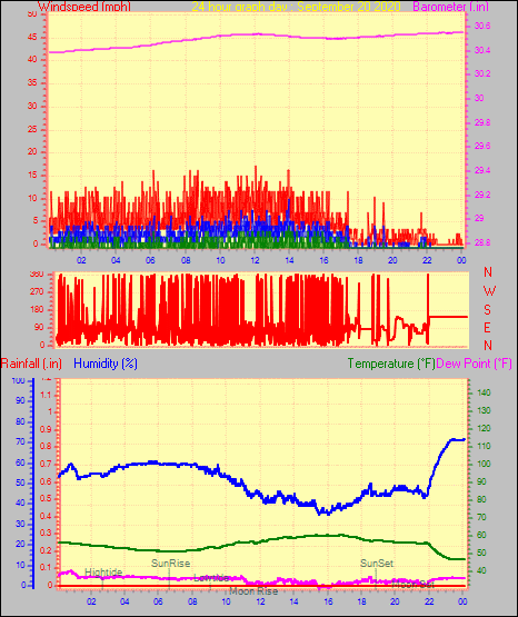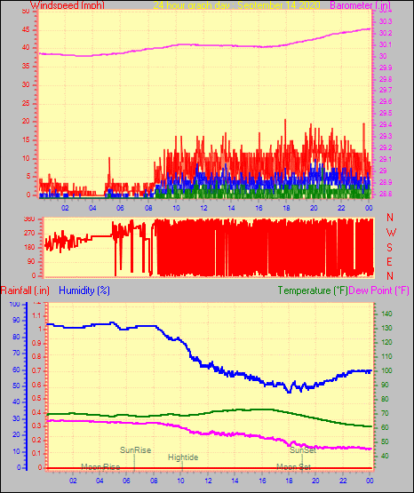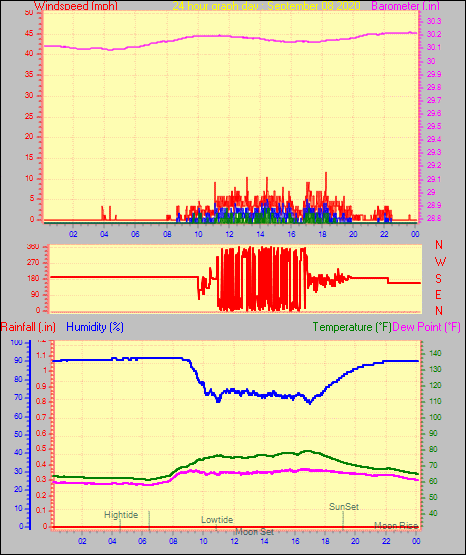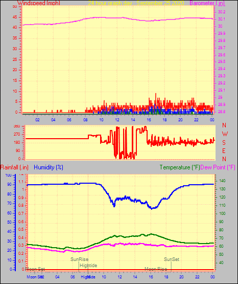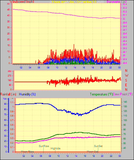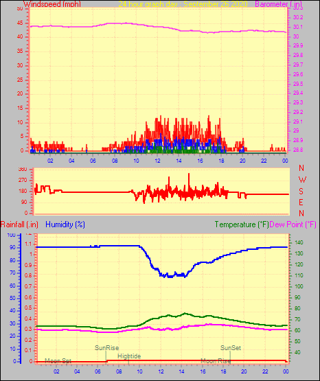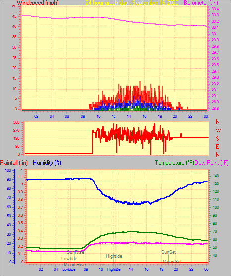 Maximum windspeed = 12.7 mph from 209°(SSW) on day 30 at time 05:17