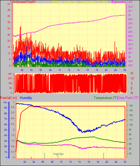 Maximum pressure = 30.043 in. on day 03 at time 23:09