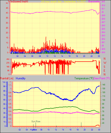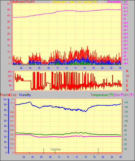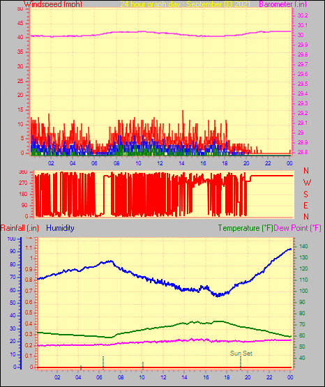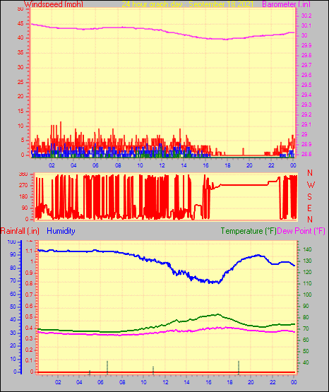 Maximum windspeed = 6.9 mph on day 30 at time 09:55