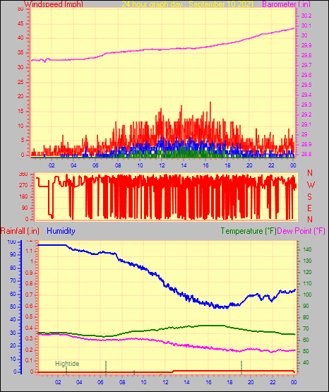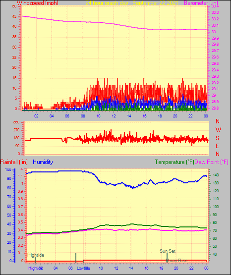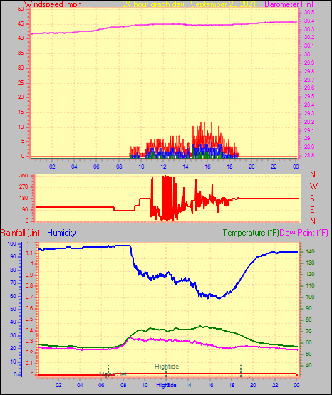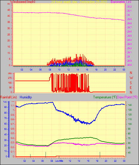Minimum pressure = 29.463 in. on day 01 at time 23:22
