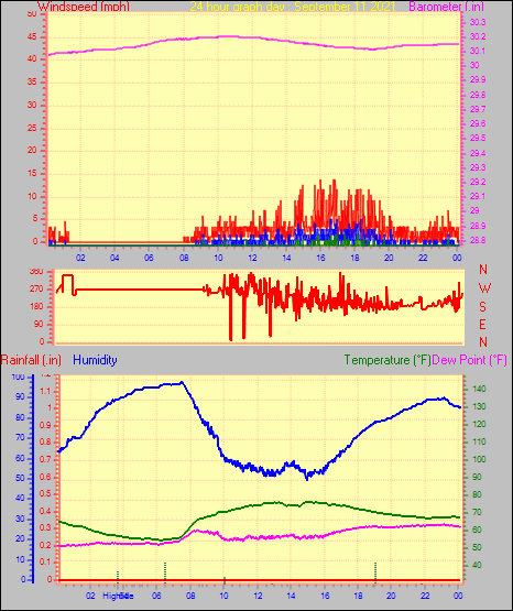 Maximum gust speed = 15.0 mph from 349 °( N ) on day 29 at time 12:16