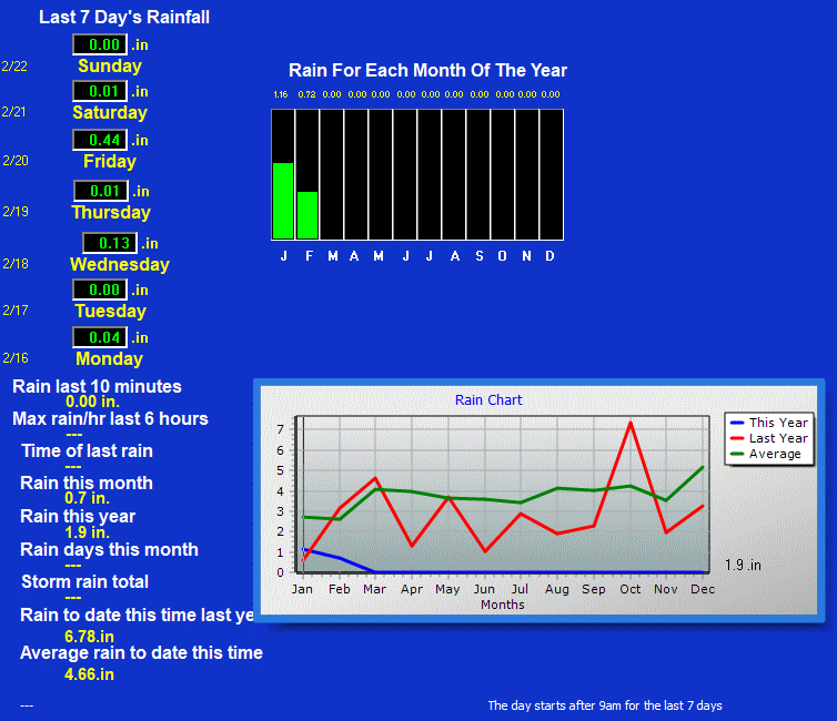 From the console, data is transferred to a nearby computer loaded with "Weather-Display" software. Weather-Display was created by Brian Hamilton, a New Zealand software developer, dairy farmer and weather hobbyist extraordinaire. Weather-Display takes the data generated by the Vantage Pro 2 and, in turn, generates an enormous variety of graphs, dials, graphic images and other data. Those graphs etc. can be used in web sites to display up-to-the-second weather. "Weather-Display Live" an add-on program, generates a Flash display of up-to-the-second data. Additionally, Weather-Display has nearly 1,000 "tags" that can be placed within a web page to pull current measurements/data into any web document. This feature can be used to customize the web site to the author's taste. Examples of the tags are found in the "Current Conditions" area of this web site.